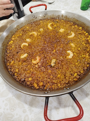 A todo esto, era un día caluroso y la terraza, sin ventilación ninguna, hizo que la espera fuese más eterna si cabe. Y por si fuera poco, los últimos 15 mins esperando a la paella tras comer la ensalada teníamos al lado unos niños que salieron de dentro y empezaron a tirar petardos al lado aunque les dijimos que lo hicieran en la acera de enfrente manteniendo la distancia por respeto a los que comíamos fuera (no es de agrado tragar humo; el ruido de los petardos se puede entender porque son fiestas) pero hicieron caso omiso y se quedaron a escasos 2 metros, justo en la cochera de al lado de la terraza.