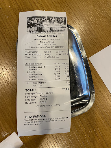 Read moreMuy buen ambiente y servicio pero la comida un desastre. Para empezar me esperaba comida algo más elaborada por ser un batzoki y estoy acostumbrada a comer en ellos. Además, pedà tempura de verduras y parecÃan congelados de supermercado, la pechuga de pollo y los pimientos sin sal... Al menos las patatas eran caseras, pero sin sal, y el postre sà estaba rico, por eso mismo no le pongo una estrella. DeberÃan mejorar la comida, porque lo demás está bien y es...