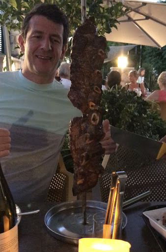 Dann aber die Enttäuschung: Huhn und Lamm sind noch zart und eine Gaumenfreude, das Schwein und die Wurst fallen schon auf die hinteren Geschmacksplätze zurück, dann kommt das eigentliche Highlight, das Rind. Und das war dann wirklich eine bittere Erfahrung. Tolle Marinade, aber innen trocken, faserig, zäh, kein Genuss.