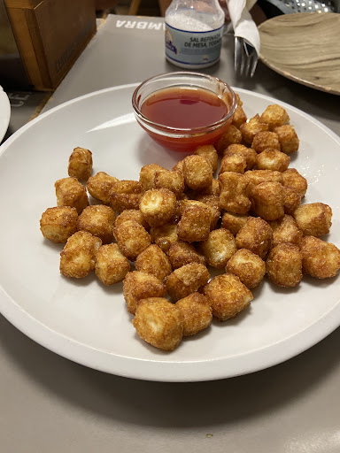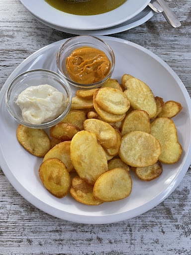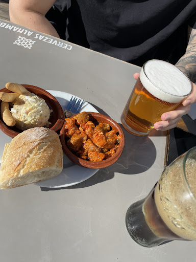 Las patatas bravas estaban muy buenas y el queso frito no estaba mal. Me hicieron un bocata de tortilla y tomate y demás como opción vegetariana, lo cual agradezco. Como opción vegana no tenían nada. Además las personas con más que iba a cenar querían pedir tapas y montaditos y demás y no tenían mucho pan, lo cual no entiendo un viernes a las 10 de la noche pero bueno nos apañamos.