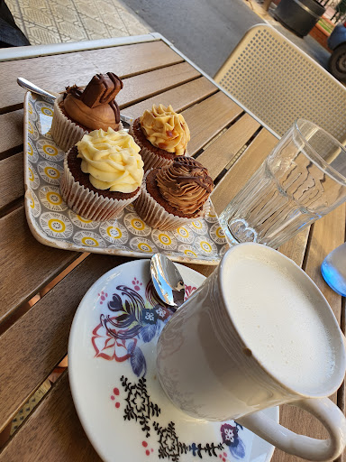Read moreLa decoración es muy peculiar, típica de la cultura Americana. Muchos detalles y zonas diferenciadas. Está la zona de la calle, con vistas a la iglesia y plaza de "Corazón de Jesús", la zona de dentro, en la que encontramos mesas con sillas, además de los cómodos sofas con mesitas más bajas. En el mostrador se ven los diferentes tipos de Cupcakes, bizcochos, galletas y demás dulces expuestos, además de ver en la pared la variedad de cafés y los ingredientes con los que lo preparan. También ofrecen desayunos salados con café y zumo de naranja natural. Los camareros muy amables y la atención muy cercana. Recomendados : Desayunos y postres ( La cheesecake, el Cupcake de kinder bueno y el bizcocho de chocolate blanco.). Ofrecen además, leche sin lactosa, y otras variedades. Y la posibilidad de realizar pedidos con reposteria para llevar y para eventos importantes.// Entrada con rampa accesible y baño adaptado, barandilla y...