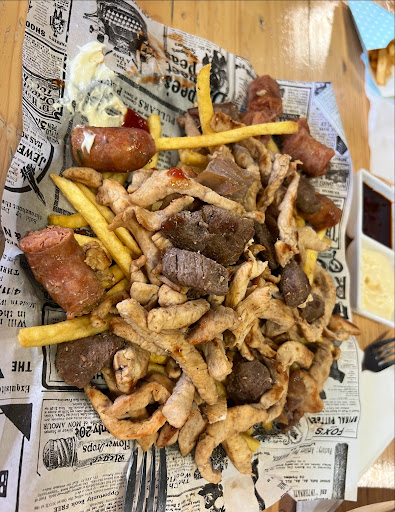 al final pedimos una parrilla para compartir que ponía que costaba 13€ al final eran 20€ ya no por el precio ni la cantidad , lo suyo Hera que no parecía estar echa ha la brasa, la sazón el sabor, no Hera lo que me esperaba Normalmente los batidos de fresa suelen llevar leche . pero eso no tenia nada de leche Hera todo hielo picado. 6€ pedimos un perrito caliente ya que en foto que salía llevaba varias cosas ,y cuando nos vino Hera un pan con una salchicha 😂también me pareció muy caro para lo que Hera ,lo que si me pareció bueno pero no una cosa del otro mundo fue las (empanadas colombianas ,.) un atraco me pareció para lo que pagamos.