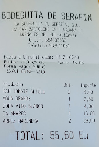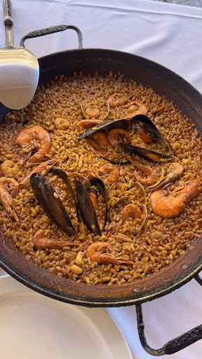 Read moreHemos comido dos personas con las expectativas quizá demasiado altas tras haber leído las reseñas. Los calamares estaban chiclosos. El pan con alioli, para el precio que tiene no daba el nivel. La paella buena y sabrosa. Me ha sorprendido gratamente el dominio de la camarera capaz de llevar ella sola todas las mesas cuidando todos los detalles y necesidades de los clientes. Eso sí, a veces era todo cordialidad y en otras ocasiones no sabría catalogarla, de lo que no cabe duda es de su profesionalidad, un auténtico lujo. Se agradece el mantel de tela y cambio de cubiertos cuando se necesita. La terraza es la que es y no se puede cambiar, pero su organización, distribución y separación entre mesas es ideal para no molestarse entre comensales, permitiendo conversar sin interferir en las conversaciones de los demás. Firmado...