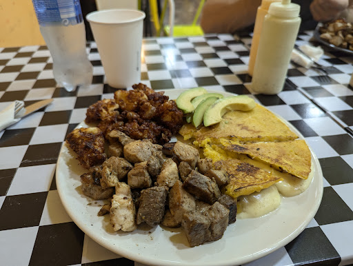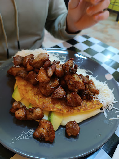 Hemos ido hoy por primera vez para comer, muy rico todo. Sacia mucho la comida. Para dos personas (y no he podido terminar mi plato) hemos pedido: mini empanadas de ternera, cachapa de pollo y cachapa de cochino. Las mini empanadas están bien rellenas. En las fotos podéis ver qué es todo muy abundante (mucho más grande de lo que pensábamos). Los trozos de cerdo de la cachapa estaban marinados muy muy muy recomendable. La cachapa es un poco dulce y combina muy bien con la carne y las salsas que traen a la mesa.
