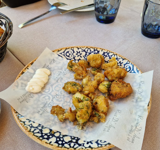 Muy buenas entradas: calamar a la andaluza, fritura de pescado, croquetas, sepionets, carpaccios, setas con foie, mariscos, ensaladas,...