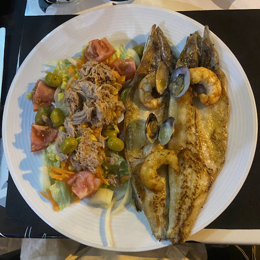 Read moreCarisimo y muy poca cantidad en los platos , fui con mi consorte para pedir un meno entero que era nuestra idea,para compartir 13€, mas , dos platos de ensaladilla con salmon 6€ cada 1, te da la opcion de pedir los dos segundos de los menus , cosa que hicimos pero no nos dijeron que los platos sueltos valen a 10€ sueltos , una raquita brocheta con papas congeladas , y un pescado famelico que deberia ser una caballa o menos q eso , porque estaba pesima de sabor y de cantidad , con patatas congeladas,la ensalada q entraba tmb muy pequeña y muy basica servida en un plato muy pequeño , no tomamos cafe ni postre y si una botella de litro de agua , ….. todo por 34€… u estafafores !!! Obvio que ni iremos mas y recomendamos...