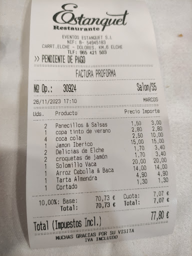 Read moreLocalización: A pocos kilómetros de Elche, en la carretera a Dolores está situado el Rest. "El Estanquet". Tal y como vamos hacia Dolores, en el lado izquierdo de la carretera. Ojo, tiene dos accesos, en dos "rotondas", la anterior y la posterior al restaurante.