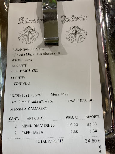 Este establecimiento de comida típica gallega ofrece un escaso repertorio de esta misma. El carísimo plato de pulpo a la gallega está bien pero con una cantidad ínfima de patatas (con cada trozo de pulpo tienes que acompañarlo con un cuarto de un trocito de patata). Además, pedí un entrecot por el que me cobraron más de 25 euros, no estaba especialmente bueno (demasiada grasa y el sabor no estaba muy allá). Por si fuese poco, por una botella de medio litro de agua cobran 2 euros. Lo único que podría destacar es el servicio de los camareros, los cuales eran atentos y simpáticos. Pero por lo demás, me parece que este restaurante es un robo a mano armada. Si queréis un buen pulpo a la gallega, por 5-10 euros más id al Narcea (Santa Pola) y aseguráis que la calidad es...