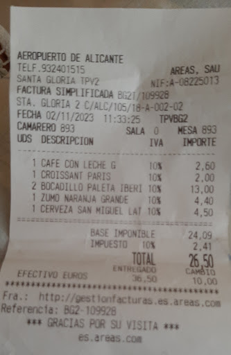 Read moreConsidering the location, the prices are really good, even better then most places in the city. We stopped only for a cappuccino, croissant and cocoa for children, but everything was really tasty, the portions were just the right size and the staff were super friendly. Next time I'm in Alicante, I'm heading straight for...