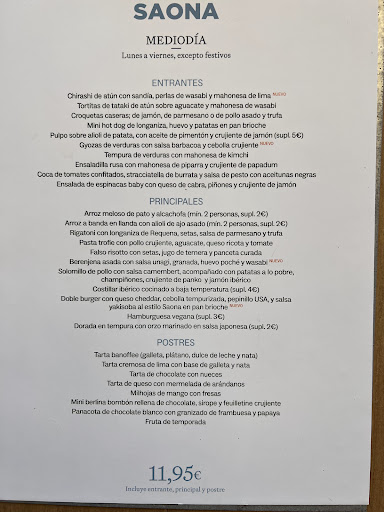 Read moreLa comida no decepciona pero el servicio si. Es la segunda vez que visito este restaurante y en ambas veces el servicio ha sido lentísimo y sin atención alguna por parte de los camareros. La primera vez, pensé que un mal día puede suceder pero ya hoy puedo confirmar que el servicio es excesivamente lento. Nadie nos ha preguntado en toda la estancia si todo estaba de nuestro agrado o si necesitábamos mas bebidas. No había camareros por la zona para poder pedir bebidas, hasta el punto de levantarnos a preguntar a la chica de la barra. He visitado el mismo restaurante varias veces en Valencia, donde el trato es impecable y tan distinto que cuesta creer que sea el mismo restaurante. Incluso los camareros explican los platos y te recomiendan. No se si el problema es sólo la falta de personal que se aprecia y es evidente, ya que ni al recogernos los platos se nos ha preguntado si todo estuvo bien, que es lo mínimo para un buen servicio. Es una pena porque el restaurante es muy bonito y la comida buena. Con más organización y atención harían incluso más dinero. Con lo poco que cuesta preguntar al rato de servir si todo esta bien o si falta algo para dar un buen servicio. Además se evitarían muchos problemas. Más de una mesa se estaba quejando por lo mismo, platos q no llegaban o camareros q no se dejaban ver para poder pedir o reclamar. En fin, espero que lo mejoréis porque la comida está muy bien. Nuestra espera fue de 35” por los entrantes y 40” por los principales. Otra cosa a mejorar es que el restaurante carece de cambiador para bebes. Pensaba que por ley se tiene que tener uno, pero pregunte y no tienen...