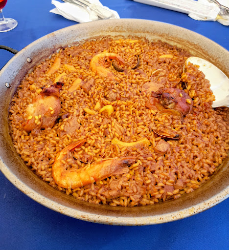 Queremos pedir dos paellas diferentes. Una paella de 3 a banda y para 2 de arroz negro (éramos 5 personas en la mesa). Otra vez, con muy mala educación dice que no, que en la cocina no le van a permitir pedir dos paellas distintas para una mesa (no le vimos preguntar a cocina). Fue vergonzoso como se dirigió a nosotros. Dijo que la comida saldría muy tarde. Fue informado que no nos importaba el tiempo de espera, pero aún así nos negó otra vez pedir lo que queríamos para comer.