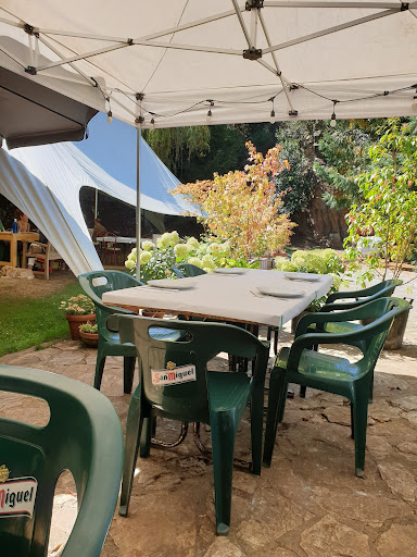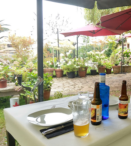 Una de las mejores cosas de este lugar es su terraza, con solo sombra, rodeada de naturaleza, con cantidad de plantas, flores y arboles que los duelos miman y que dan un aspecto muy acogedor.