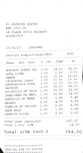 Read moreEs la segunda vez que hemos ido y ha sido porque las croquetas estaban muy ricas la primera vez q fuimos. Y por las reseñas que tiene quisimos darle otra oportunidad, por probar otras cosas para ver si estaban igual, pero no ha sido así. Por lo que hemos quedado descontentos. La ensaladilla rusa a parte de la patata poco más te vas a encontrar, se puede comer pero solo eso, muy básica y cara para lo que es. Los canelones de marisco no son lo que esperaba porque deberían de llevar bechamel por encima gratinados y rellenos de marisco, sin embargo estan bañados con la salsa y parece cualquier cosa menos canelones. Que cobren el servicio de mesa no se a que se debe porque si es por el pan que no hemos pedido no deberían cobrarlo y si es por el servicio que dan tampoco, porque no es un buffet para servirnos nosotros y si tienen camarer@s es para dar ese servicio. Nada más llegar y sentarnos nos da quien nos atiende una charla sobre el vino que aconsejan ese día.... Yo no bebo vino. (Primero hay que preguntar) . Y sin dejarnos ver la carta para ver que queremos pedir, nos enseñan una chuleta para que veamos la carne que tienen y el tamaño. (Primero la carta por favor y si decidimos que queremos carne entonces si.... Pero no queríamos carne) Nada...