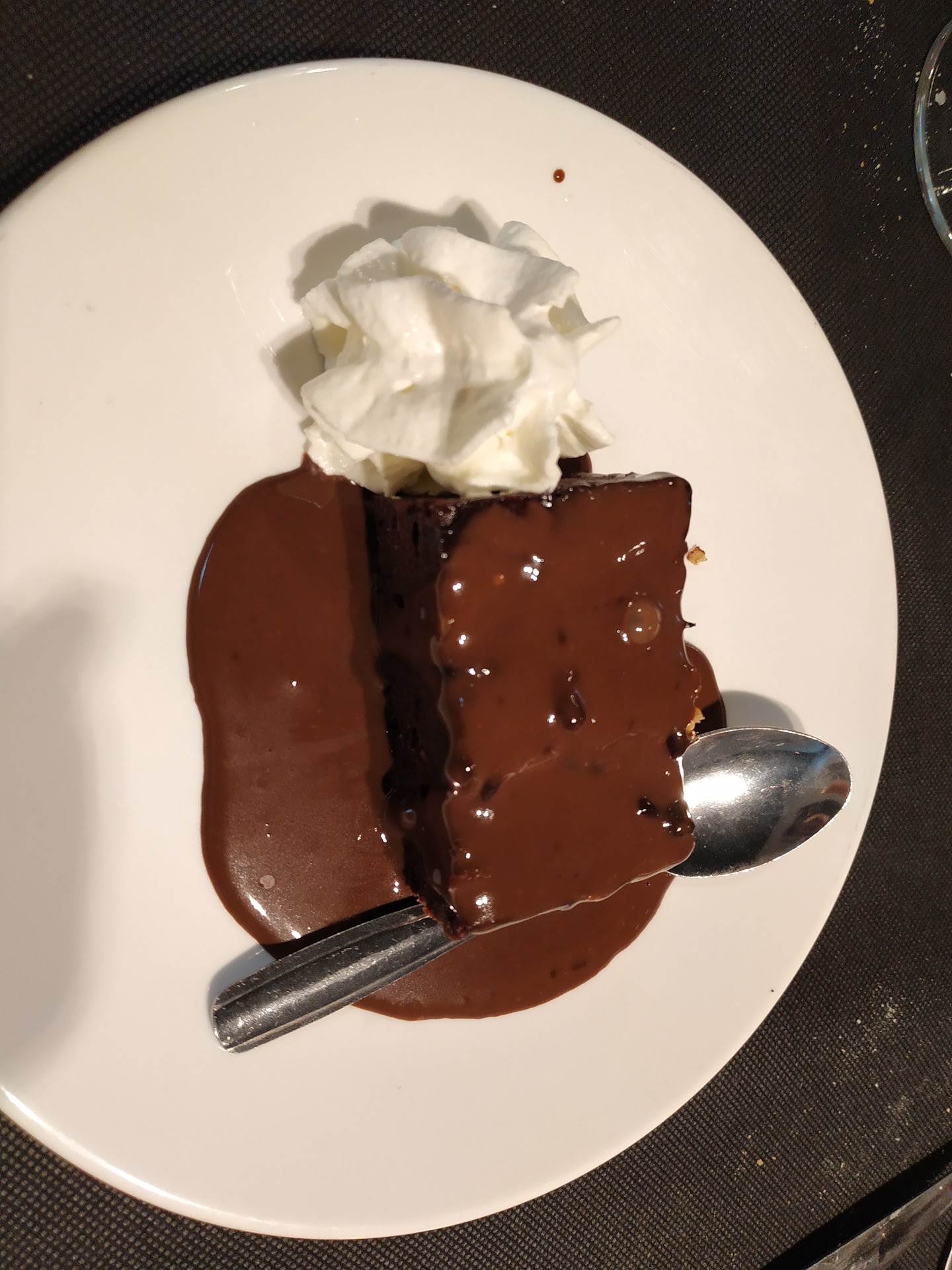 Buen servicio de camareras. Hoy día 20 de Julio, según menudo degustado. 1° Cogollos de tudela con anchoas etc, muy rico, de 2° merluza lomo de merluza a la plancha con refrito de vinagreta etc, INCOMIBLE, se le debió caer o abrir el bote de la SAL, lo devolví, me lo cambiaron por begiandi en su tinta...lo comi, pero mismo de lo mismo, a este cocinero o cocina, la sal....se les cae en abundancia, y dejo como reseña, soy de los que me gustan las comidas más bien Sabrosas ehh, para no poder comer la merluza y begiandi en su tinta, justo poder comer y por vergüenza no devolver otro plato de seguido....hay lo dejo. Y plato 3° confit de pato al oporto con manzana asada...esta bien el plato, PERO TE DEJA UN AMARGOR....eso si, la compota de manzana cojonuda,jeje. El postre...pedi espuma de mando con helado de chocolate, No puedo opinar, ya que para mi gusto no me gustó, NO digo estuviera malo, Para gustos pienso yo, todo ello con una botella de cava y un café solo y un Barcelona cola, precio 45,70e/ una persona. Espero valga para algo, como todas las reseñas que tengo en Google Maps y hasta ahora, voy batiendo récord. Gracias. No es dar mala fama, lo pongo para que cada uno antes de ir, sepa que se va encontrar y si esta reseña el dueño/a, cocinero/a, puedan corregir esos errores que según mi experiencia, No se pueden tolerar comidas SALADAS. Subo foto del Menu y algún plato del menú que hoy he cenado. TIPICO ERROR MUY COMUN AUNQUE NO LO CREAIS, COCINAR Y NO PRUEBAN LA COMIDA, SINO...vosotros serviriais una comida, plato que esta SALADO DE C...ES?, Yo jamás. Hay que probar lo que cocinas antes de servir a los clientes y cuesta el mismo género,tiempo de hacer MAL un plato, que hacerlo bien o a menos, No Servirlo si uno sea equivocado o está malo sin más. Foto del lomo de la merluza no saque, ya que de presentación muy buena como todos los platos pero se lo...