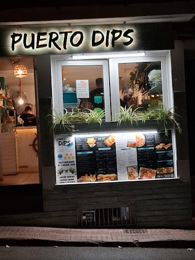 Wile viewing the great choice options on the large menu display boards attached to the outside of the building ,a member of staff popped out with a sample tray offering to taste nachos with a homemade parmesan & chive dip .As the chap returned back inside(no pushing you to take a table either )& left me to enjoy the delightful snack which I was impressed with, I then decided to ask about a table for two.There's seating options inside but I opted for an outside table on warm evening on the terrace which is located directly across the road The paved area has around 10 tables dedicated to Puerto dips but a bit further back are more tables which belong to the pizza business on the opposite side of the road.The young staff on duty were very pleasant providing excellent table service during the evening & spoke very good english too.. We decided on nachos with a couple of dips ,(Mexican,paramesan & chives )to share along with a couple of small beers.The nachos were plentiful alongside good portion size dips.We decided to share a wrap with berries for dessert,which was very nice indeed, washed down with a couple more beers .Cash or card payments are accepted. This was a very enjoyable 1st time experience in a low key setting .I would definitely recommend a visit here & hopefully return back...