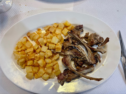 Read moreThe staff were friendly and the place has a certain good atmosphere. However, the food was quiet basic. I choose lamb chops and wish I had looked at photos beforehand. As many have already said they were ribs with very little meat on the bone. See the photo. They were a lot of work to eat but tasted good if a little too salty. We shared a starter that may not be on the menu and it was delicious (thinly sliced tomato and menorcan cheese with oregano, we choose not to have the capers on top). See the photo. We also had menorcan style squid which was good. It seems that most plates are protein plus fried potatoes. The house wine was not great. Overall I would say it was poor...