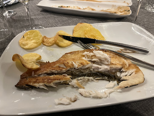 Read morePues la verdad es que estoy algo decepcionado. Mi sensación general en Menorca de casi todos los sitios en los que he estado es que venden gastronomía, pero las cocinas no están a la altura en la mayoría de los casos. En este caso pedimos lubina como pescado del día, a 35 euros el lomo. Sería una lubina de unos 650 gramos más o menos. Lo malo es que al vendérmela me dijeron que se sellaba en la plancha y se terminaba en horno con una vinagreta suave con ajo del chef. Como se aprecia en la foto, nada más lejos de la realidad. No me cobraron una de las lubinas porque no me la comí básicamente porque estaba pasada. Pero al retirarla de la mesa nadie me preguntó por qué no me comía un plato de 35 euros. Fue alguien el la cocina quien pregunto, y ya después apareció el camarero para preguntar. Así que al menos no pague por ella, pero el cocinero insistía que estaba en su punto, pero la realidad es que estaba absolutamente pasada de punto y seca. El resto de platos normal en general, aunque por ejemplo pedimos unos raviolis trufados y no fuimos capaces de detectar la trufa en los 4 raviolis que había en la ración. Estaban buenos, eso si. Pedimos también pulpo, y bien de sabor también, pero en una ración de pulpo tocamos a 3 rodajas finas de pulpo por persona (éramos 4). El pulpo nada del otro jueves. En definitiva, para mi una cena por la que en Madrid la puedo tener a 100 euros, pues aquí me ha costado 152 euros (no tomamos vino ni postre)… Pedimos dos entrantes (pulpo y sardinas) y 2 raviolis y 2 lubinas (solo pagué 1). La relación calidad precio no está bien ajustada en mi humilde opinión. El servicio en general bien y atento, y la mesa muy espaciosa, cosa que se agradece y aprecio. Igual vuelvo otra vez y cambio de opinión, pero en este caso me he ido ciertamente...