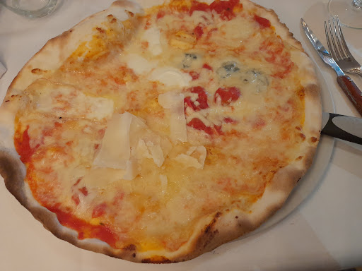 Please don't call yourself an Italian restaurant, the explanation follows. Pizza quatro formagi: the crust tasted like flour and actually broke instead of cutting, and the list of ingredients for this kind of pizza can be found with a simple search on the Internet. Pasta carbonara: effectively a mountain of pasta without any taste, served more with the water in which they were boiled than with sauce, this ignoring the fact that they were made with cream. Instead of guanciale, I got a boiled ham and the pecorino cheese was completely missing from the recipe and was not even replaced with parmesan. Now regarding the service: we go for lunch to make a reservation because it looked like a popular restaurant and we didn't want to miss a table where we were greeted by someone who didn't know English but immediately called a colleague and everything went perfectly, we were really impressed by the professionalism of the staff. In the evening, when we arrived at the table, we were taken over by the same person who did not speak English, which created discomfort even though the colleague who knew English was also in the restaurant, and we had to manage as...