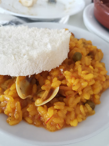 Empezamos por unas papas bravas, muy bien fritas y con el punto justo de pique para que puedan disfrutarlas todo tipo de paladares, excepto mexicanos y similares. El arroz, que estaba terminando de prepararse, madre mía, buenísimo!. Para nada el típico arroz de menú de domingo de cualquier bar. Estaba meloso , muy sabroso y con los ingredientes perfectos. De hecho tuvimos que pedir repetir varias veces de lo bueno que estaba. Los montaditos ; pues pedimos el de chipirón con alioli casero, me encantó, el de chorizo picante, muy bueno, y el de serranito que quizás fue el más flojete aunque por 1,80€ , cumple sin problemas.