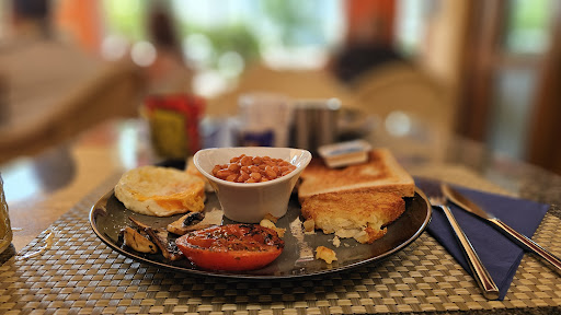 Food: The half English breakfast featured a delightful assortment of traditional items: sausage, a fried egg, baked beans, toast, and a grilled tomato. Every component was perfectly cooked and bursting with flavor.