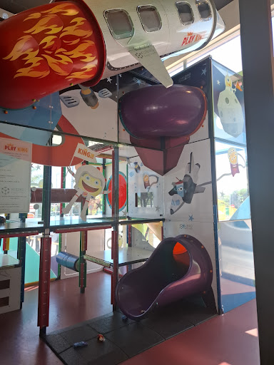 An ordinary Burger King, placed besides a gas station. Nice area for kids, with some touchscreen games, as well as one projected on the floor, and some slides and cubes to climb. Self service machines for purchases as well as high tech machine to dispatch sodas, beware of no interrupting it too often while dispatching or your soda will be more watered than expected. Diversity of seat and comfy areas, as well as high chairs, USB ports for charging, didn't try their WiFi, but they do have too. Great place to spend some time while kids miss track of...