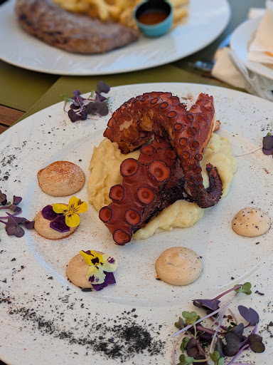 Followed by a beautifully presented grilled octopus tentacle, which was accompanied by mashed potatoes. The octopus was huge and tasted great, but you could tell it was overcooked (it was too chewy, not tender). We also ordered beef sirloin medium cooked, but honestly it was almost white so we thought it was actually the pork.