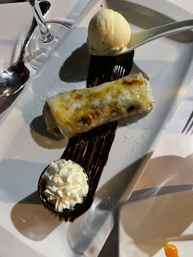 Read moreOne of the strangest meals I’ve experienced in quite a while. First of all, the head waiter/manager was actively hostile. Communicated in grunts, flicks of the head and eye rolls. Truly a bizarre way to interact with paying customers, like being served by a surly teenager. He was in such a rush to get away from us whilst taking our order that he incorrectly took down my starter. When the wrong dish arrived and we complained there was no apology. There was a lot of screaming coming from the kitchen though. The starter never came. The food was quite complicated, 80s style fayre: stuffed mussels, timbales of this and that, architectural stacks of seafood - lots of fruity sauces. A nightmare to catch up on as the wheels came off in the kitchen, it would appear. The terrace and restaurant itself are beautiful. The inside was really nicely decorated, and the view from the terrace quite lovely. The place was clearly over booked as the wait between courses was very long, even by local standards, and the staff were rushed off their feet. Nobody asked us how our meal was or said goodbye as we left. Simply put, it was...