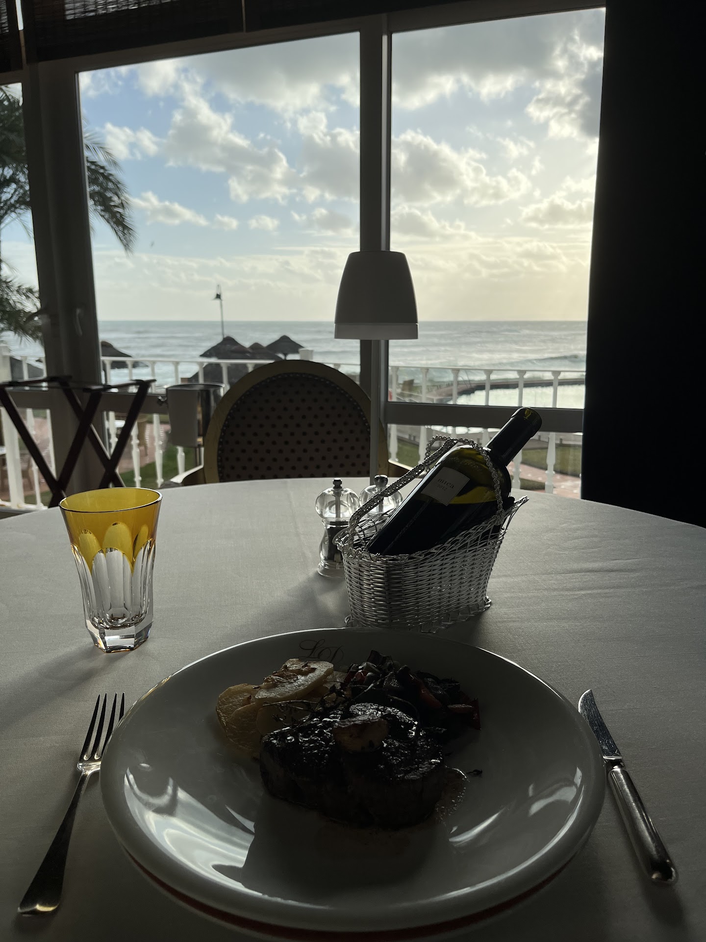 As I understand it, In the season there are 3 restaurants open, and now only 1, which is a combination of 'Lido' indoors and 'Las Palmeras' outdoors, serving the same menu prepared in the same kitchen. Skip the strange starters and go directly for the Sole, the Burger or something similar to stimulate your tastebuds. I never understood the concept of paying top dollar for 'spanish tapas' 💸 such as ham (Jamon Iberica) or Cheese (Manchego). Maybe this is why the concept hardly exists outside Spain 🇪🇸 while we have an Italian on nearly every corner world wide 🇮🇹