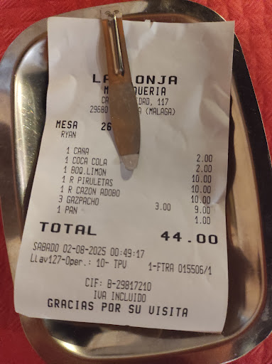We called for an early (20:30) evening meal. Their Ensalada Tomate (€5) is exceptional, sliced selected tomatoes sprinkled with chopped garlic, sea salt and dressed with delicious local olive oil, simple but delicious, much better than served in many other restaurants. We selected a plate of fried John Dory (€7) and a plate of calamari (€10) for mains. The fish was cooked to perfection, seasoned well and not overcooked, calamari was equally delicious. A bottle of Vino de la Casa Blanco, on special offer if bought with a plate fish,€15 for wine and John Dory a bottle of water topped the bill to a very...