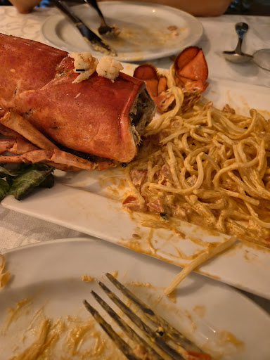 We had 2 starters, shared a lobster with one side dish, 2 deserts, 2 cocktails and a bottle of wine which came to a total of €182. They don’t accept Amex.