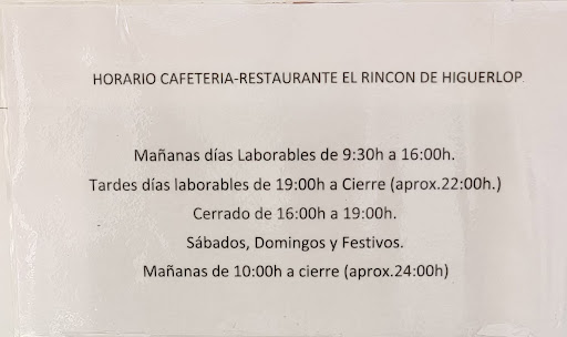 Read moreNo puedo por menos que poner esta reseña. Vengo a Estremera en Verano desde hace años y siempre he ido a tomar algo y a comer al bar del pueblo. Sólo hay uno, el HigerLop. Hasta ahora no había tenido ningún problema, pero he llegado a comer a las 15.08 y estaba la puerta cerrada. Según llegaba, 15 sg. antes de llegar justo a la puerta, he oído un pestillo, y me he dado cuenta que lo habían echado por dentro en ese mismo momento, al llegar. He tratado de entrar y no he podido.||Estaba leyendo el cartel que había en la puerta cuando ha salido el camarero habitual, y con unos modos bastante desagradables me ha dicho que estaba cerrado. Le he dicho que eran las 15.08 y en el cartel pone que cierran a las 16.00. Le he preguntado y no me ha dejado ni contestar, me ha dicho que estaba cerrado porque la cocina la cierran a las 15.00 y no dejan entrar a nadie después de esa hora y me ha dado con la puerta en las narices dejándome con la palabra en la boca.||Hombre, si pone las 16.00 entiendo que es la hora hasta la que puede entrar gente, cierren la cocina cuando la cierren. Ni siquiera sabe si quiero un bocadillo o me valen unos pinchos o un poco de queso para lo que no hace falta cocina. Es la primera vez en mi vida que 1h antes de una hora fijada para el cierre de un sitio me dejan en la puerta, más aún cuando pasaban 8 min. de la supuesta hora en la que cierran según sus criterios. En 52 minutos cualquiera come 2 veces en un bar de menú.||Al final el tipo nos ha dejado sin comer sin más, ya que en el pueblo no hay alternativas, ni siquiera un supermercado abierto.||Adjunto la foto de la puerta donde pone las horas. No deja de ser curiosa la laxitud con las horas de cierre en algunos momentos que pone que son aproximadas y no hayan sido capaces de darnos un poco de margen. Me parece impresentable el trato que...
