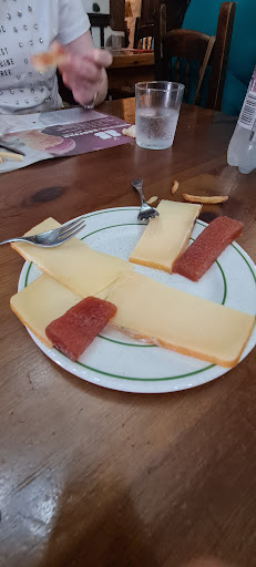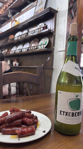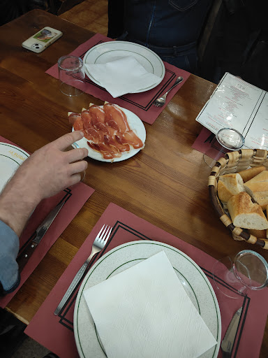 Read moreEntramos en el restaurante y el chico que atiende la barra, amabilísimo, incluso nos acompaña a la mesa del comedor interior. Empezamos bien y todavía acabaremos mejor. La camarera, eficiente también, nos canta enseguida el menú. Nos ponen para hacer tiempo cuatro lonchas de jamón serrano muy correctas y un vino tinto que resulta ser discreto, corto, amoscatelado, pero que será el único (ínfimo) fallo de toda la comida. El potaje de alubia roja de los mejores que hemos probado en Navarra, las alubias tiernas, la salsa de primera y tropezones abundantes y buenos. Y unas croquetas muy originales, buenas, seis y muy bien fritas. De segundos un filete normal de ternera con unas patatas muy bien hechas. Y escandalosamente buenas sus costillas de ternera que hay que pedir obligatoriamente: ponen cinco trozos grandísimos y están tiernas y muy bien tostadas.. Resultaron no sólo buenísimas sino que la cantidad que nos pusieron nos pareció increíble. Realmente en este caso con un solo menú hubiésemos podido comer los dos y resultó ser además un menú de sólo 10 euros por persona. Espectacular. El pan sólo correcto y las natillas y el arroz con leche buenísimos, dulces, perfectos. Los cafés discretos y incluidos en los 20 euros dos personas. Y nos remataron con una invitación a un chupito de crema de orujo. Realmente por calidad precio merecen un 10. Además el local nos pareció muy agradable y nos atendieron de primera. Hiper hiper ...