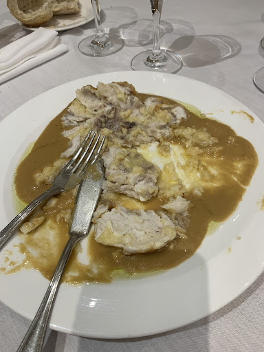 Supongo que al ser domingo no había menú. La comida no esta mal pero crean falsas expectativas. Pedimos merluza rellena con langostinos y vino una cosa asquerosa de vista, con crema o pure de langostinos… no se que era. Cuando la abrimos se nos quitaron las ganas de comerla. La cerveza la tienen solo en botellines pero no lo dicen. Pedimos cervezas sin alcohol y vino servida en el vaso, sin botellín. No sabía ni que estaba bebiendo. La ensalada vino aliñada y se sorprendieron cuando les pedimos el aliño. Pues no sabia a nada y estaba sosa. El personal atento pero demasiado. Te quitan todo muy rápido parece que quieren que te marches cuanto antes. La torrija vino con merengue y estaba seca. No sabía a lo que tenia que saber. Los precios bastante subiditos para ser un pueblo en medio de nada. No creo que vuelva...
