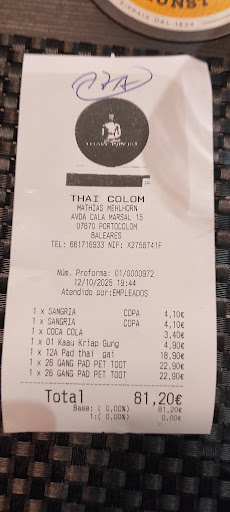 Read moreWe went here to order something for takeaway. The waitress was nice and welcoming, however that was already the best thing to experience that evening. Can’t say much about the atmosphere inside but it didn’t look super cosy. Honestly speaking - I wouldn’t expect this from a Thai/Asian restaurant though. Unfortunately the food was definitely not what we had expected. Maybe we ordered the wrong dishes or they simply had a bad day but our food lacked almost everything you would wish for in a Thai dish. No flavor overall, no vegetables in the Pad Thai, almost raw onions in our curry, no spiciness, no seasoning. There are definitely better options in Portocolom to get tasty...