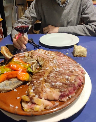Read moreNo está mal, es la 2ª vez que voy y me ha pasado exactamente lo mismo que la primera así que tardaré bastante en volver, al menos hasta que crezcan mis hijos (11 y 6 años). En la carta ponen pincho moruno y resulta que a medio día no lo ponen, tampoco unas patatas fritas. Así que mis hijos solo pudieron comer carne ya que todo viene con pimientos y no les gustan. Creo que debería haber algo para niños, solo con los pinchos y las patatas creo que ganarían comensales. Por otro lado nada más sentarnos los 8 que íbamos, nos querían vender lo que les interesaba a ellos sin mirar ni la carta. No fue hasta que pedimos que nos dejasen un rato que se dieran por vencidos y finalmente pedimos lo que nos apetecía y no lo que ellos querían. Decir que la carne estaba buena, pedimos chuletón de ternera, solomillo de ternera, pluma ibérica y chuleta de buey. Lo más bueno el solomillo, era como mantequilla. La ensalada de pimientos con ventresca no falla nunca si el producto es bueno. El queso cremoso también estaba muy rico y las mollejas.....no estaban mal. Los postres eran todos congelados salvo los yogures. Una pena lo de los niños y lo de entrar...