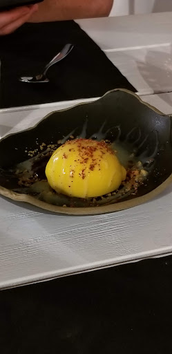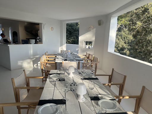 My husband said I should use the word sublime, so I'll say this: the view of Cala Galdana is exactly that. Sublime. The atmosphere is great if you like easy listening covers of pop hits and mod, Instagrammable surroundings. It's a very hip, fashionable place, with expensive rooftop cocktail bar vibes. I wish I could say the same things about the food, but I can't. It was fun and fancy (and you definitely pay well for that!), but we were not full or impressed by the food and drinks. The regular menu is limited, but the sushi menu is extensive. I can't speak to the quality of the sushi because I got the Francesa roll (brie+salmon tartar) and realized that I don't like that combination of melted cheese and sushi. My husband got the Menorcan beef dish which came with a small pile of french fries and dotted mayo-like sauces. But like I said, the view is sublime and the atmosphere is hip and fancy, and if you're already having a great vacation, it won't ruin the experience. Oh, and the "chocolate surprise" dessert is very lemony! It's dyed white chocolate in the shape of a lemon filled with lemon mousse and mojito paste in the middle, with some kind of strawberry or raspberry jam swirled on the side. Delicious,...