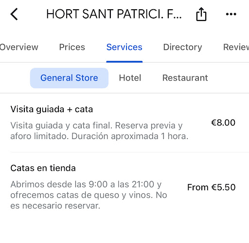 Read moreAfter a nice morning at the beach, we were on the search for an activity away from the crowds and other tourists. We took a chance on Hort Sant Patrici not having any set expectations. We were beyond pleased to say the least. The food, staff and wine were all excellent. Well beyond what you would expect at any winery or restaurant on an island. I had the mussels, the entrecôte, and panacotta (three course meal) and my partner had the beef carpaccio, baby squid and white chocolate mouse (another three course). I would rate all six dishes in the 85%+ range. We also had the blanco, merlot and rose wines, similarly we also ranked these highly. All wines were quite distinct in their own way, I’ll let you decide on your own aficionado terms to use for your experience should you decide to have one at the restaurant at Hort Sant Patrici, but I’ll use just two universal terms...”great value for money” and...