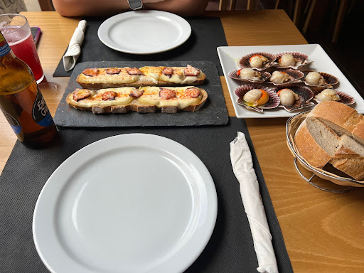 Read moreUn lugar excelente para comer, con una relación calidad-precio magnífica. Fuimos cuatro y al empezar a pedir nos aconsejaron reducir el pedido porque "iba a ser mucho". Les hicimos caso y efectivamente, las cantidades que dan son muy buenas. Sobró comida que nos pusieron para llevar. Si pedís tostas tened en cuenta que cada plato trae dos tostas de buen tamaño. Dan para dos personas. Las raciones también son para dos personas. Comimos cuatro: dos platos de tostas (cuatro tostas), un entrecot (grande), media de raxo, dos de merluza (dos lomos con patatas y pimientos por plato), una ensalada mixta, dos brownie, vino, cerveza y agua. Invitaron a los cafés. 90 euros. Tienen comedor y...