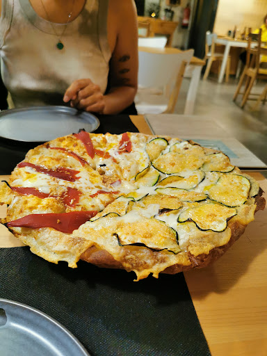 Read moreVinimos recomendados porque no había sitio en un vegano. Tienen dos platos veganos: una ensalada algo cutrilla en cuanto a ingredientes, y una pizza. Pedimos dos pizzas y nos dijeron que se hacían un poco al gusto, con los ingredientes que quisiésemos. El camarero propuso su básica (calabacín y aceitunas negras), y de entre los ingredientes que vinieron a la cabeza, elegimos champiñones y berenjena, aunque tampoco nos dio tiempo ni opción a escoger nada más. Llegaron las pizzas sin base de tomate (hola?) y con un extra de queso vegano exagerado. Somos de comer BASTANTE y nos hartamos, dejamos media pizza de cada, porque sólo sabían a queso (queso vegano y rico, pero Solo queso). Por encima, al pagar, una de las pizzas costaba lo mismo que ponía en la carta. Pero la otra fue más cara, al parecer, y sin aviso previo, dependiendo de los ingredientes, costaba más. Un poco timo... Muy insatisfechos, no...