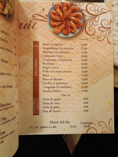 El precio es estupendo y el menú del día (disponible incluso en domingos, aunque un poco más caro) incluye bebida, pan y postre/café.