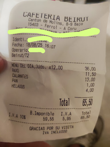 Read moreEl café buenísimo, pero nose porque el camarero no nos trajo croasancitos de estilo pincho que le traía a todo el mundo... Nos trajo una mierd* de sobaos sin plato ni nada, a algunos le traía croasancitos y a otros sobaos...vale que no quedaban igual croasancitos, podía decirnos no quedan croasancitos pero tenemos estos sobaos si los quieren, o no son clientes habituales y les toca sobaos no croasancitos por mucho que los pidan amablemente...y haber traído un platito como a los demás hubiese estado bien que al resto que le llevaban croasancitos o sobaos incluso no les tiraban los sobaos en la mesa... Si no está el camarero y hay croasancitos volvemos seguro. No por mal pero el café está increíble pero el estilo pincho de ferrol no puede faltar. Los sobaos en un sitio como el beirut de tanta fama no quedan...