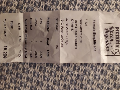 Read moreUn buen sitio en Ferrol para tomar pizzas y patatas. Las raciones de patatas son enormes, sin duda merecen la pena. Las pizzas tienen una masa bastante gruesa y son de tamaño estándar. Hay una amplia variedad de pizzas. El local tiene terraza y mesas en el interior. Sirven a domicilio. Los aseos están limpios y el servicio es rápido aunque había muy poca gente cuando estuve. La cerveza de grifo es estrella Galicia. El trato del personal es...