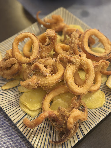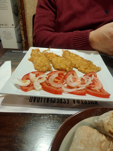Read moreFuimos a comer un día de semana y comimos de menú,13€/ persona; la comida muy rica, de primero tomamos pimientos del piquillo rellenos y bacalaos( lirios) rebozados y de segundo,carrilleras ( creo que aún siendo menú una cantidad ridícula,2 minitrocitos de carne)y tallarines con verduras y gambas.El menú incluía el postre,arroz con leche y hojaldre con cabello de ángel y de beber pedimos una cerveza1906 y un vino albariño, además de café ( que nos cobraron aparte) y un té. El local está bien,algo frío,de hecho la gente estábamos en su mayoría con los chaquetones...