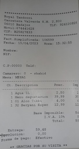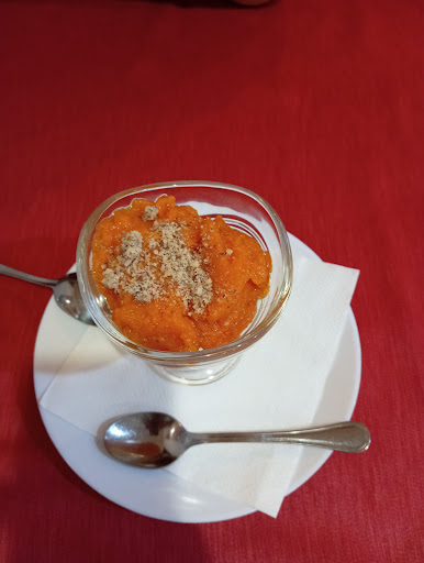 Read moreLa nourriture est bien délicieuse et très copieuse. Nous avons opté pour un menu bbq pour 2 personnes et nous n'avons pas réussi à terminer les plats. Dans le menu y a 2 nans, 1 nature et 1 a l'ail bien généreux, deux sortes de riz (sucré et aux épices) plusieurs viandes et préparations végétales (sorte de gratin de pomme de terre ou encore aux oignons). Le poulet tikka masala est servi a part pour préserver la sauce. C'était délicieux et pas piquant du tout, adapté aux palets européens, en tout cas j'apprécie énormément car je ne suis pas très fan quand c'est trop épicé. En dessert le restaurateur nous a servi un riz au lait (a la saveur de noix de coco et amandes) et une sorte de dessert a base de semoule probablement safranée avec les amandes concassées. C'était bon mais assez basique. Pour terminer ce repas nous avons bu du thé à la menthe et aux épices, super savoureux et délicieux. Le service est aux petits soins, les plats servis rapidement avec les explications nécessaires. Le restaurant n'accepte pas les chiens a l'intérieur, comme ils disposent d'une petite terrasse a l'extérieur et le temps était agréable, nous avons pu déjeuner...
