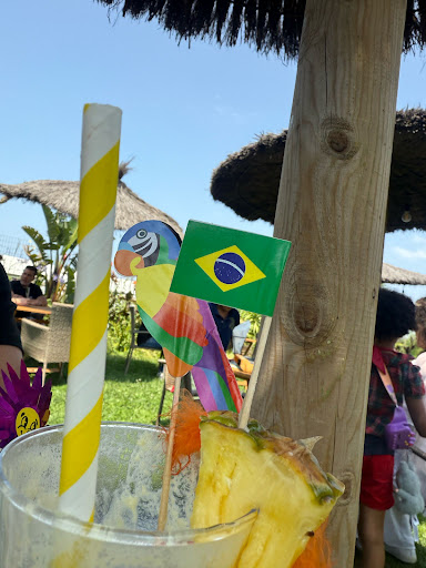 La propuesta gastronómica está a la altura. Degustamos una feijoada sabrosa y bien equilibrada (también hay la opción vegana), pastéis de picaña crujientes y generosos, raciones de coxinhas de calabresa con queso catupiry y quibes (tamaño mini pero suficientes), todos preparados con esmero y sabor auténtico. Las bebidas son variadas y frescas, pero es la caipifruta de acerola la que se lleva los elogios: refrescante, aromática y perfectamente equilibrada.