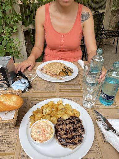 The first service person we met was responsible for the indoor area. After we told him that we would prefer to sit outside because the restaurant was strong air conditioned the person reacts significant unfriendly and signalled strongly with his hand “then go outside” behind our back. I saw this by chance because I wanted to ask him about the way.