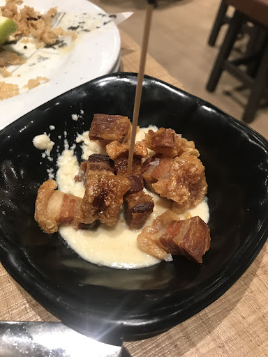 On our arrival at the restaurant, we were warmly greeted by the waitress that took our orders for drinks, as well as explaining us the concept of the restaurant since we were unfamiliar with it. Pinchos on the bar are self-service and cost 2.50€. Every few minutes you will hear a loud bell sound. With this, the waiter goes around each table, offering freshly cooked pinchos from the kitchen (they also cost 2.50€). The leftovers end up on the bar for self-service.