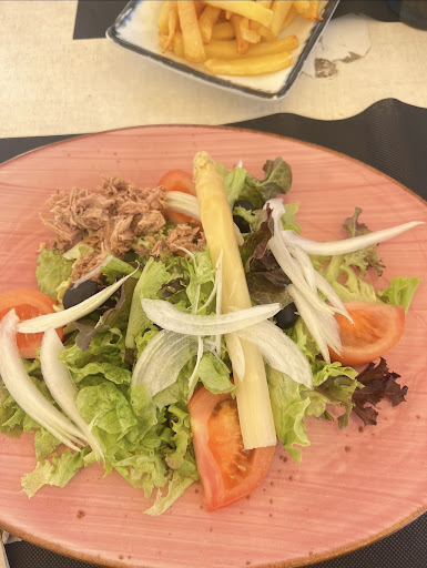 Read moreLe restaurant est très joli de l’extérieur, mais c’est tout. J’ai mis 3 étoiles pour le service car le serveur un monsieur d’un certain âge, qui parle français était assez sympa. C’est très très cher pour le peu qu’il y a dans l’assiette. Je ne conseille pas du tout ce restaurant. C’est bien dommage car les ventilateurs avec Brumisateurs sont très utiles car il fait chaud. Mais c’est tout. J’ai commandé une salade de thon, elle était insignifiante, tes déçue, pour 12€. J’ai pris des frites pour mon fils: les frites étaient surgelées, pas cuites, donc j’ai dit au serveur qu’on ne les prendrais pas, il est parti demander à son patron, le patron a refuser de l’enlever de la note. Donc nous les avons payées. Les crevettes a l’ail: 3 crevettes qui se battent en duel dans un petit ramequin. Les calamars pas bon, le burger de ma fille pas bon, je ne vais pas lister toute la commande. Le seul truc bien. C’est l’emplacement. Même le kebab à côté est meilleur. Ça m’a vraiment fait de la peine d’avoir laissé de...