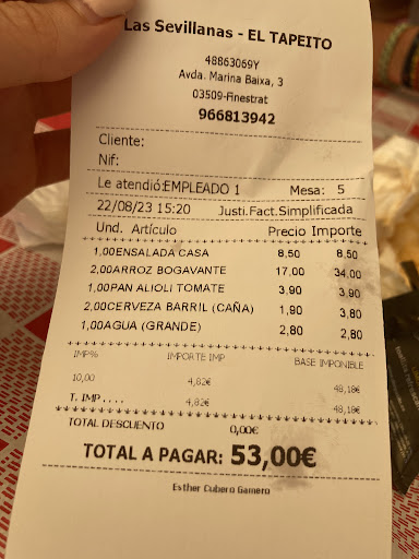 Read moreNoch nie so ein schlechtes Erlebnis gehabt in einem Restaurant, sehr unfreundliche und unsympathische Bedienung! Vorsicht richtige Touristenabzocke! Wenn man kein Spanisch spricht, wird man abgezockt! Sepia war gummig, die gambas al ajillo noch nie so schlecht gegessen ( ich habe schon sehr viele gegessen) ohne Knoblauch schwimmen in Öl, komische Konsistenz man weiss gar nicht was man isst. Wir waren drei Personen, jeder hat davon probiert und haben die dann zurück gehen lassen, weil es überhaupt nicht geschmeckt hat. Trotzdem waren es dann auf der Rechnung! Es wurde behauptet, wir hätten nur eine davon essen dürfen aber ist doch logisch, dass jeder von den Leuten je eine am Tisch davon probiert. Es wurde keine Einsicht gezeigt, nicht mal auf die Hälfte des Preises wurde eingegangen! Das höchste man sagte uns da gehört gar kein Knoblauch rein, echt krass was für eine Frechheit! Noch nie so etwas unfreundliches erlebt. Ausserdem sehr lange Wartezeiten, 1,5 Stunden auf 3 Tapas gewartet. Spart euch das Geld und einen...