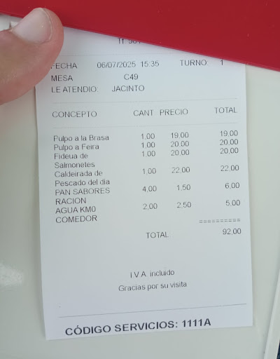 Un lugar muy bonito, pero todo lo demás es una absoluta vergüenza. A pesar de los malos comentarios que leí previamente, quise ir para ver con mis propios ojos si algunas cosas eran ciertas y la sorpresa que me llevé fue de todo menos grata. Precios excesivamente inflados, hasta el punto de que te están estafando. Hay muchos lugares en los que el mismo marisco es más barato. No pueden poner medias raciones de cosas que yo misma sé (de primera mano) que le han puesto a otras personas (por ser conocidas o influyentes). También, a estas personas que conozco de primera mano, no cobran el agua (por ser de km 0), sin embargo a mí sé que me la cobraron. Todo esto lo dije en su momento y las explicaciones fueron las siguientes: de los longueirón no pueden poner media “porque las piezas están contadas y no pueden dividirlas”. Vinieron 10 unidades, ¿no podían poner 5 unidades en la media?. Claro que no podían, pero no porque no pudieran dividirlo, sino porque el abuso de precio es tan grande que poner tan solo 5 unidades en un plato iba a “cantar” demasiado. del agua, el hombre no sabía responderme, y en 3 ocasiones me respondía cosas distintas a lo que le estaba preguntando. ¿Por qué he visto tickets con agua a 0€ y sé de personas a las que no se le ha cobrado y a mí sí? Una de las cosas principales que quería saber era desde cuando se estaba cobrando el agua… y el camarero respondía que el agua “la rellenan porque viene de manantial”. Sin sentido. Como cuando te preguntan la lección en la escuela y contestas “churros con colacao”.